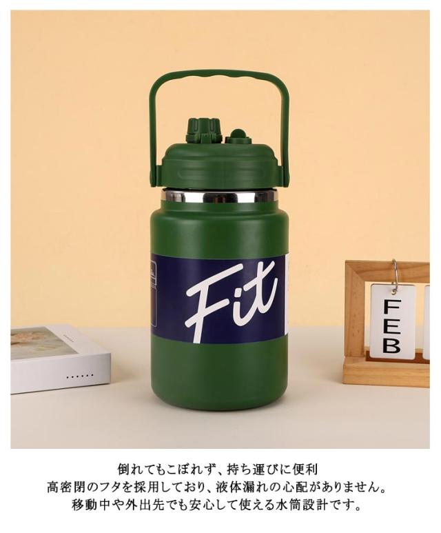| 1.5L 2.0L 2.5L 毎日の水分補給にうれしい大容量 倒れてもこぼれず、持ち運びに便利 高密閉のフタを採用しており、液体漏れの心配がありません。 移動中や外出先でも安心して使える水筒設計です。 プレミアム品質で安心 本体には高品質な304ステンレス鋼を使用し、安全性に配慮。 PBAや水酸化物、鉛などの有害物質は一切不使用です。 毎日の水分補給にうれしい大容量 容量は1500ml、2000ml、2500mlの大容量ボトル3タイプから選べます。 日常使いはもちろん、スポーツやアウトドアにも最適です。 優れた保温・保冷力 真空断熱の二重構造ステンレスボトルで、飲み物の温度を長時間キープ。 暑い日も寒い日も快適に使用できます。 | |