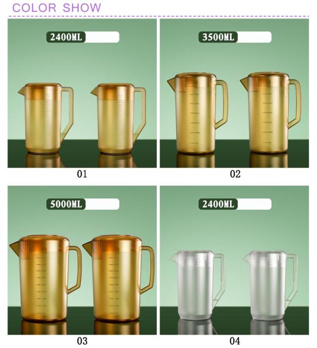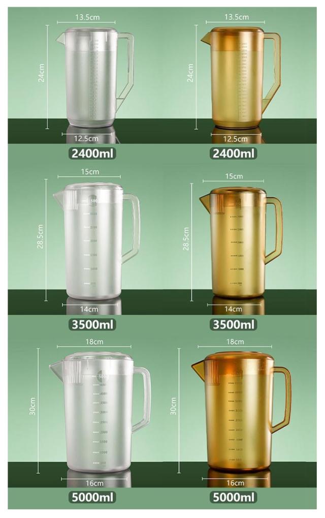 | 2個セット 2400ML 3500ML 5000ML 大容量冷水ポット 便利な目盛り付き♪ 注ぎ口を角にすることで水の流れがスムーズになり、楽に注げる設計です。 プラスチックで軽く、ガラス製のようにちょっとした衝撃で割れる心配もありません。 大きい開き口、シンプル構造が、いちばん簡単に衛生管理出来ます。 大容量なので、夏場の麦茶作りにもおすすめです。 | |