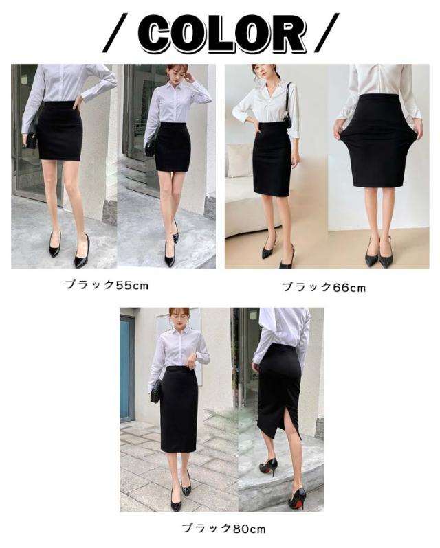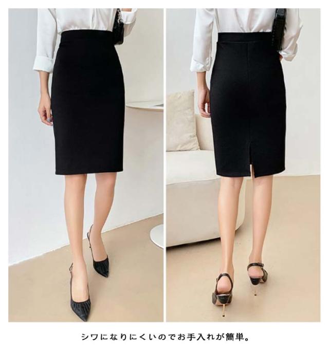 リクルート タイトスカート スリット入り 黒 ストレッチ ビジネス 選べる3丈 ウエストゴム ミニスカート スカート 膝丈 タイトスカート 企業 制服 オフィス 事務服 ユニフォーム レディース 通勤 面接 仕事用 大きいサイズ ボトムス スリム