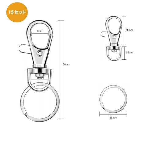 ナスカン 二重リング キーホルダー 15セット 38mm 平キーリング ダブルリングー 28mm シルバー キーリング 回転フック 金具 変形しにくい 錆びにくくて 手作り 手芸用品 DIY用