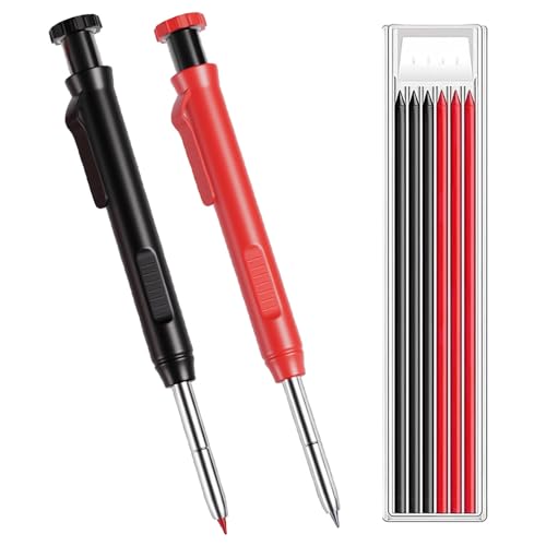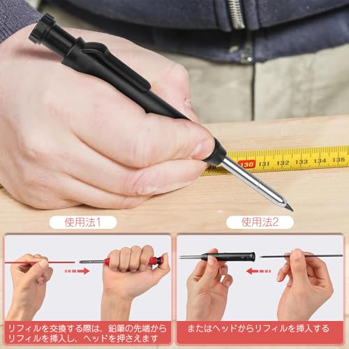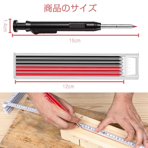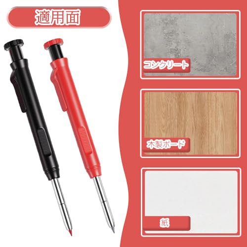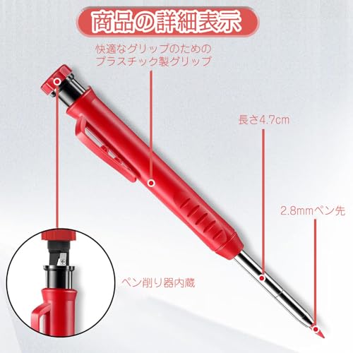 大工用鉛筆 2.8mm 鉛筆 シャーペン 芯 マークシート用シャーペン シャープナー内蔵 大工仕事 建築 木工 建設 製図 スケッチ マーキングツール用 2本 替え芯2色6本付き (赤 黒)