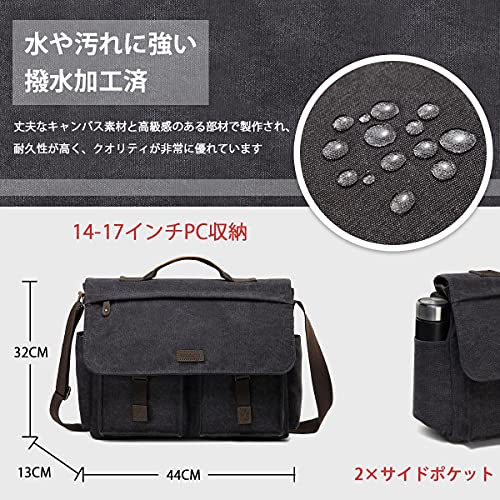 ショルダーバッグ メンズ 帆布 メッセンジャーバッグ 大容量 撥水加工 14-17インチPC収納 ビジネスバッグ 通学 通勤 斜めがけバッグ A4 カバン