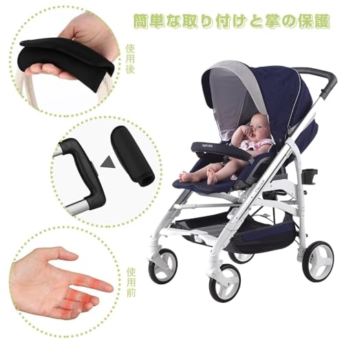 功能:いい手触り ベビーカーの取っ手は金属製なので、手が汗をかきやすいです。ハンドルカバーの装着感が良く、押しやすいです 、滑り止めの効果にもなります。手への負担を軽減します。これからママたちが長く押していても手が疲れません。