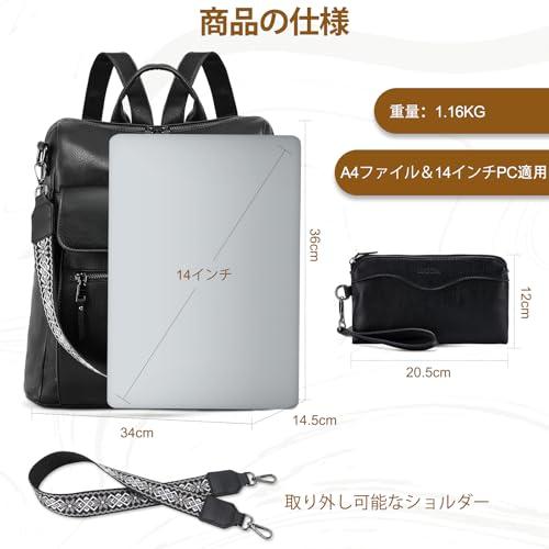 リュック レディース 大容量 PU レザー バックパック 防水 撥水加工 3Way マザーズリュック 通学 旅行 通勤 2点セット ミニポーチ 取りギターショルダー付き
