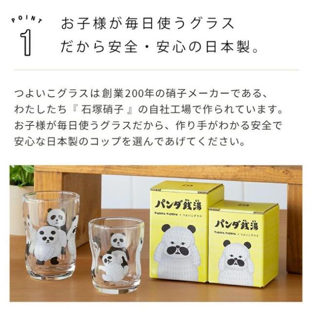 コップ つよいこグラス 2点セット パンダ銭湯 アデリア tupera tupera × つよいこグラス S&Mセット 日本製 とうちゃん こども ガラス 子供 絵本 ツペラツペラ コラボ 持ちやすい 小さい 練習 割れにくい 幼児 かわいい イラスト キッズ プレゼント ADERIA 送料無料