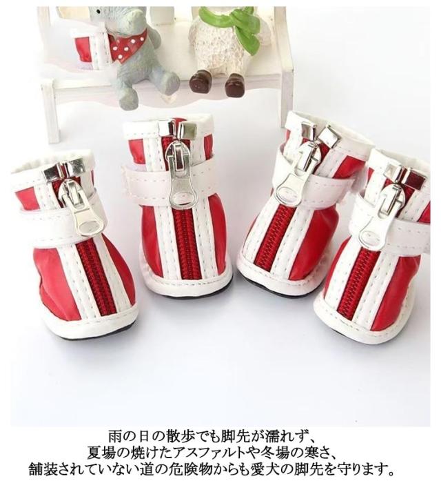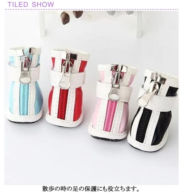 | 4個組!お散歩後に足を洗うのが嫌いな愛犬にもオススメ! 散歩の時の足の保護にも役立ちます。 雨の日の散歩でも脚先が濡れず、 夏場の焼けたアスファルトや冬場の寒さ、 舗装されていない道の危険物からも愛犬の脚先を守ります。 | |