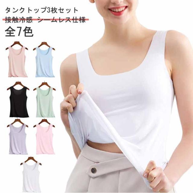 【3枚セット】 接触冷感 タンクトップ レディース インナー 下着 肌着 スクエアネック ノースリーブ トップス シームレス 吸汗 速乾 タンク スト