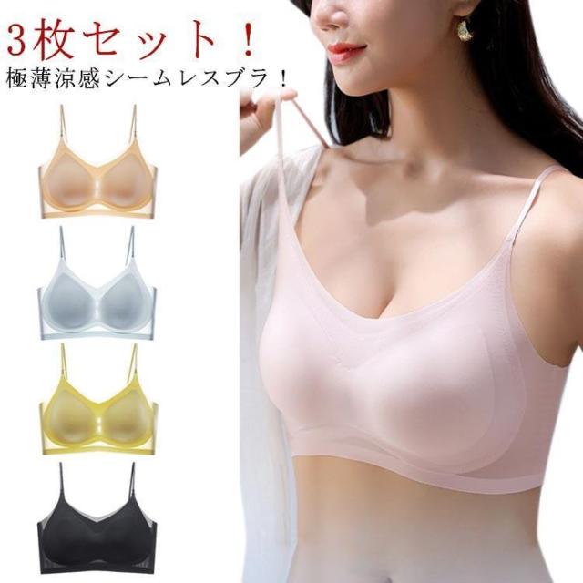 シームレス インナー 涼感 ワイヤーなし 3枚セット ノンワイヤー 夏 ブラジャー 接触冷感 涼しい 夏用 冷感 ブラ 胸を小さく見せる 極薄 締め