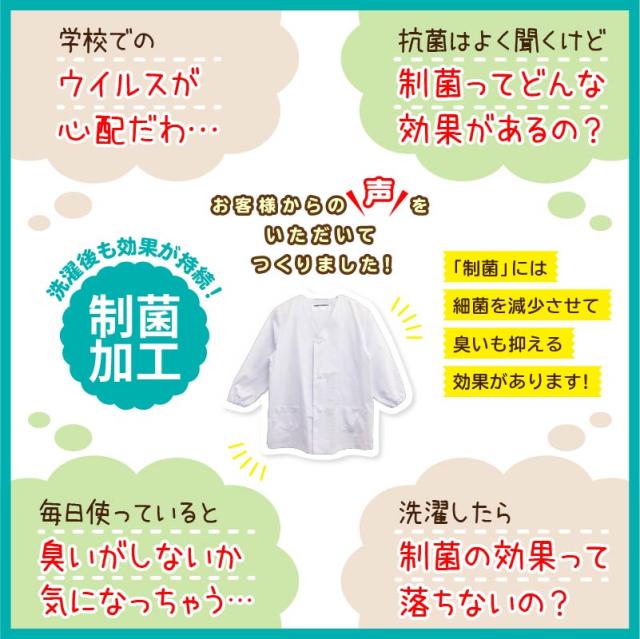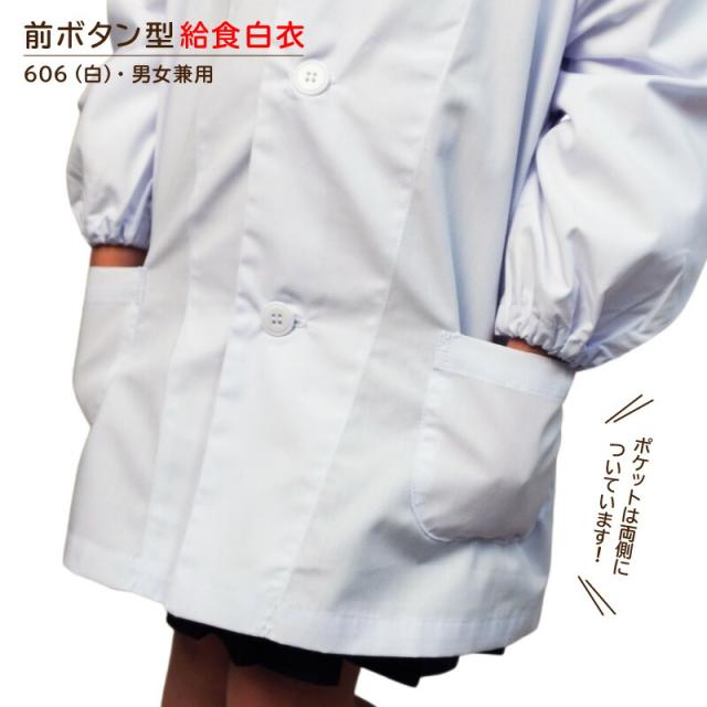 【メール便対応可】給食白衣 ノーアイロン 606 制菌 小学校 子供用 給食衣 学校給食 エプロン 給食 白衣 学校 前ボタン 給食エプロン 給食着 白 長袖 小学生 子供 こども 給食白衣