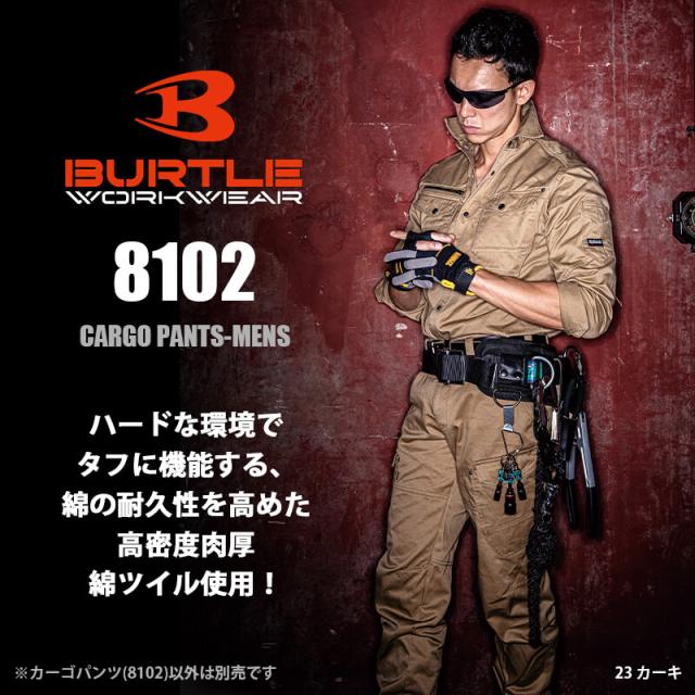 パンツ カーゴパンツ ズボン 作業服 作業着 メンズ バートル BURTLE 8102 かっこいい おしゃれ 大きいサイズ 綿100% 防縮 製品洗い加工 細身 S M L LL 3L 4L 5L 6L 7L 8L オールシー