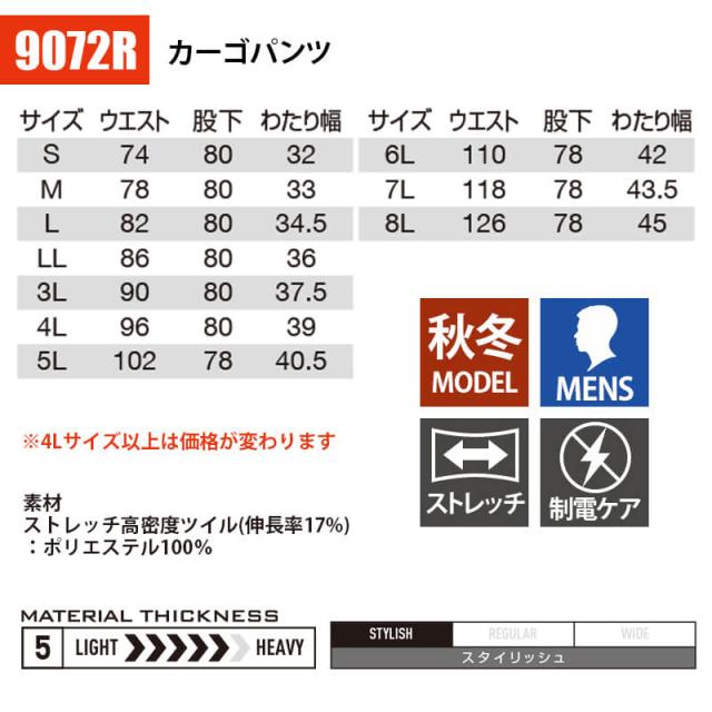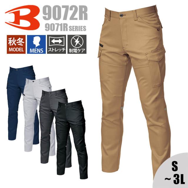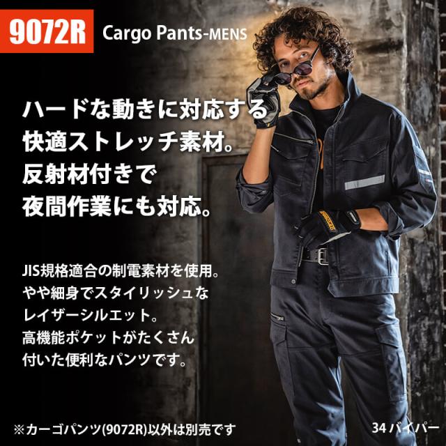 バートル 作業服 作業着 カーゴパンツ S-3L 9072R メンズ BURTLE かっこいい 高視認 反射材 夜間 秋冬 ポケット シルバー ネイビー カーキ グリーン ブルー キャメル ツイル 制電 細