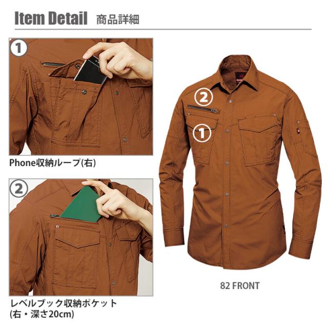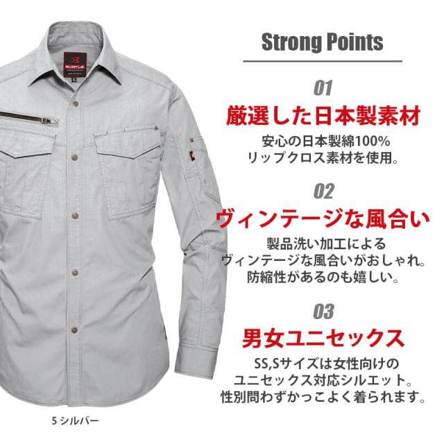 シャツ 長袖 作業服 作業着 メンズ レディース 男女兼用 ユニセックス バートル BURTLE 5515 かっこいい おしゃれ 大きいサイズ 綿100% 防縮 製品洗い加工 ヴィンテージ 細身 SS S M