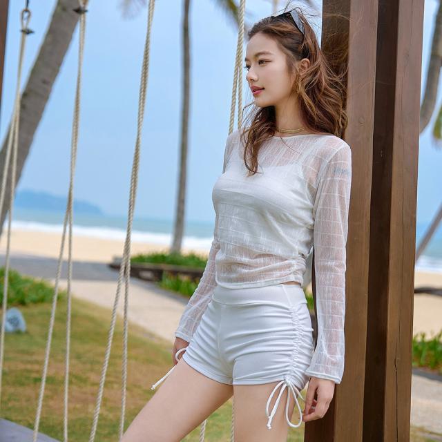 シアートップスの透け感が今っぽい3点セット水着