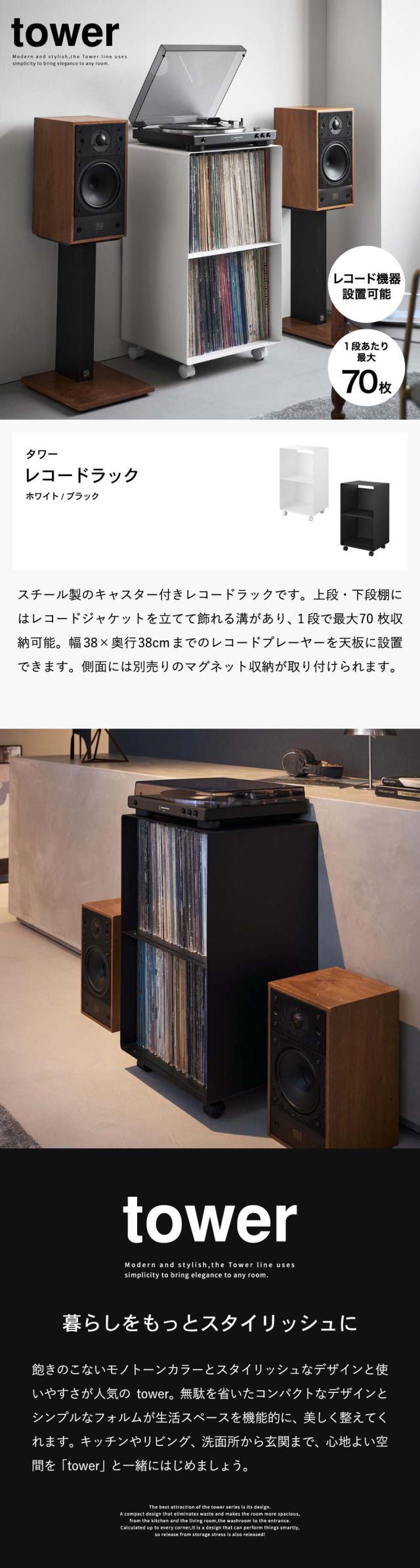 山崎実業 tower レコードラック タワー 公式 10229 10230 ホワイト ブラック 送料無料 / 収納棚 収納ラック ディスプレイラック レコード収納 棚 プレイヤースタンド キャスター付き タワーシリーズ yamazaki JGS