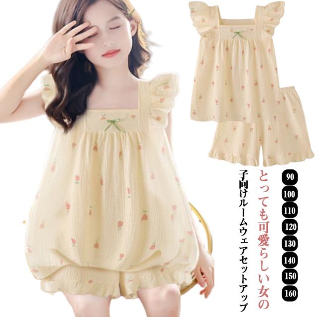 シンプル パジャマ セットアップ 半袖パジャマ 女の子 上下セット 子供服 ハーフパンツ パジャマ 可愛い ルームウェア キャミソール カジュアル 夏 ガールズトレンド 90cm 100cm 110cm 120cm 130cm 140cm 150cm 160cm