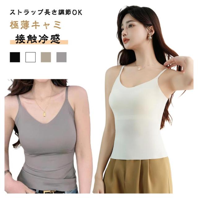 シームレス インナー 補正 接触冷感 カップ付き 薄手 夏 極薄キャミ 下着 キャミソール インナー 極薄 カップ付き 夏 脇肉 補整 レディース 下着 背肉 ストラップ長さ調節OK わき肉 幅広設計 サラリシアースタイル