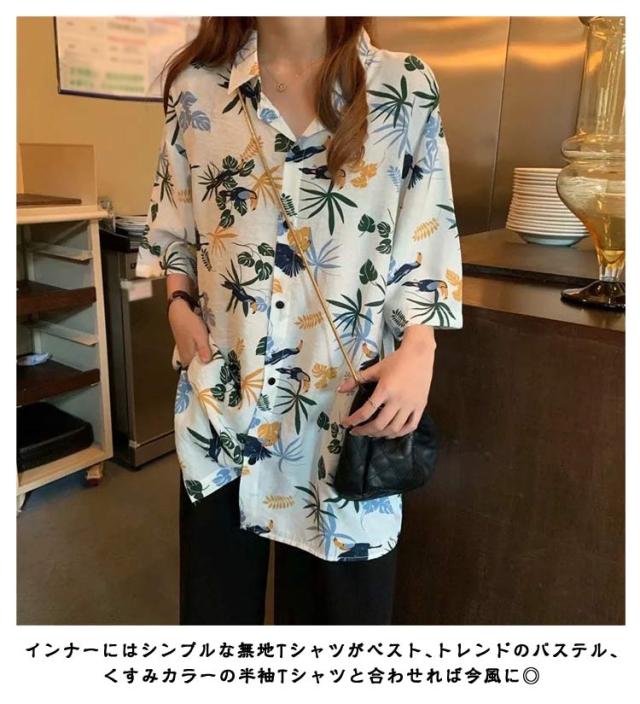 アロハシャツ 総柄シャツ トップス 五分袖 レディース 開襟 半袖シャツ ボタニカル柄 おしゃれ 総柄 花柄 ダンス 衣装 カジュアルシャツ アロハシャツ オーバーサイズ 羽織り レトロ ビッグシルエット カジュアル ビーチ リゾート 海辺 ゆったり 大きいサイズ ギフト