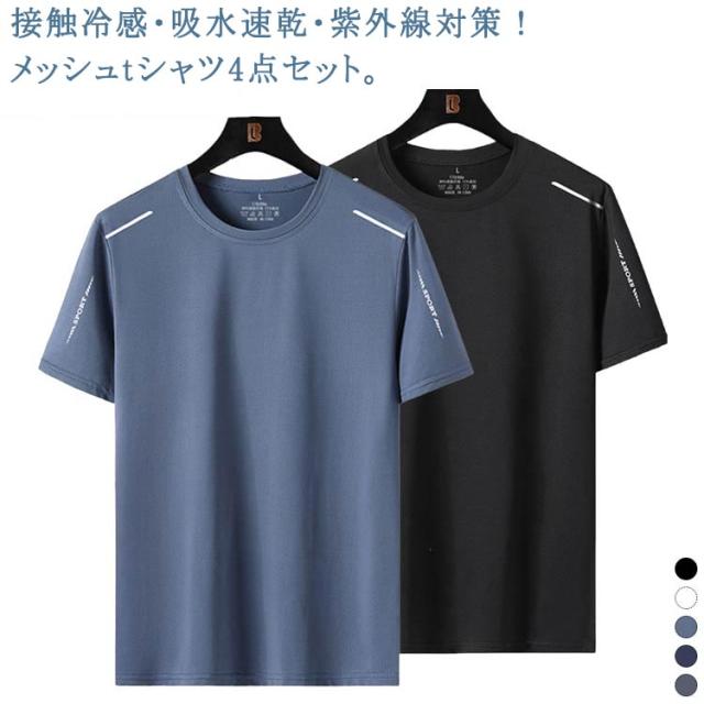 4枚セット 吸汗 メンズ Tシャツ トップス メッシュ 男性 ストレッチ 通気性 半袖 速乾 ドライ 作業服 作業着 夏用 涼しい 夏用 クルーネック UVカット DRY 接触冷感 ゴルフインナー 4枚セット 軽量 スポーツウェア アウトドア