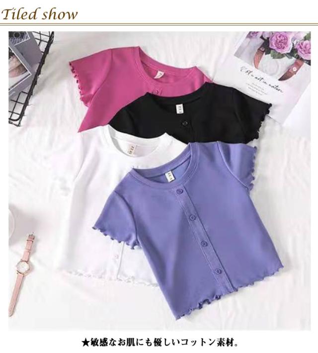 丸首 夏 部屋着 キッズ 半袖tシャツ 子ども服 可愛い フリル ジュニア ベビー服 ショート丈 トップス 夏服 女の子 カットソー キッズ ルームウェア 韓国子供服 ガールズ 女児 おしゃれ 通園用 遊び着 お出かけ