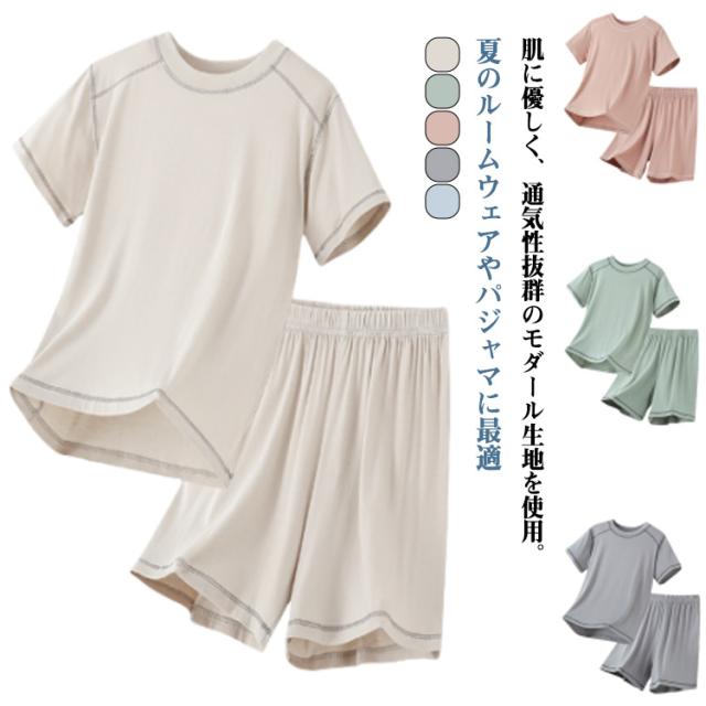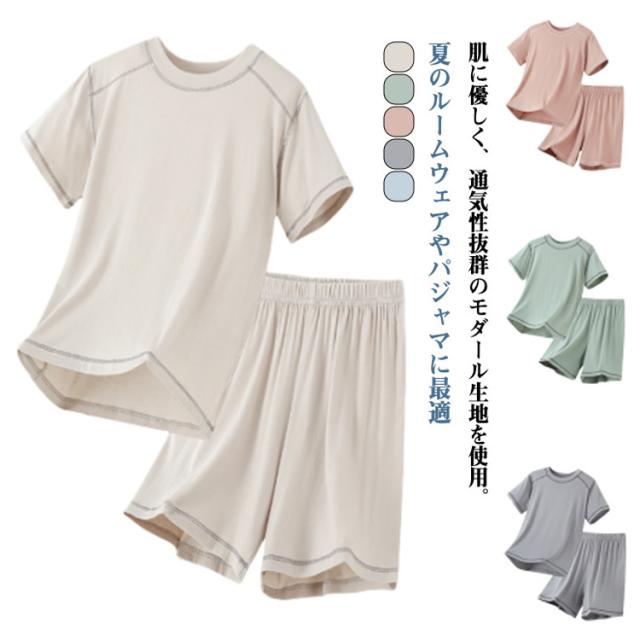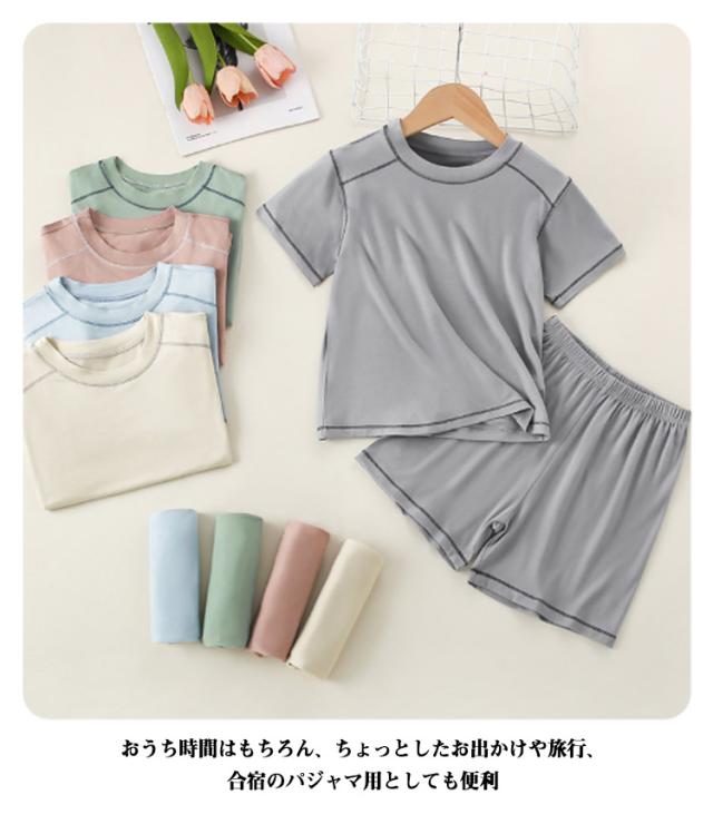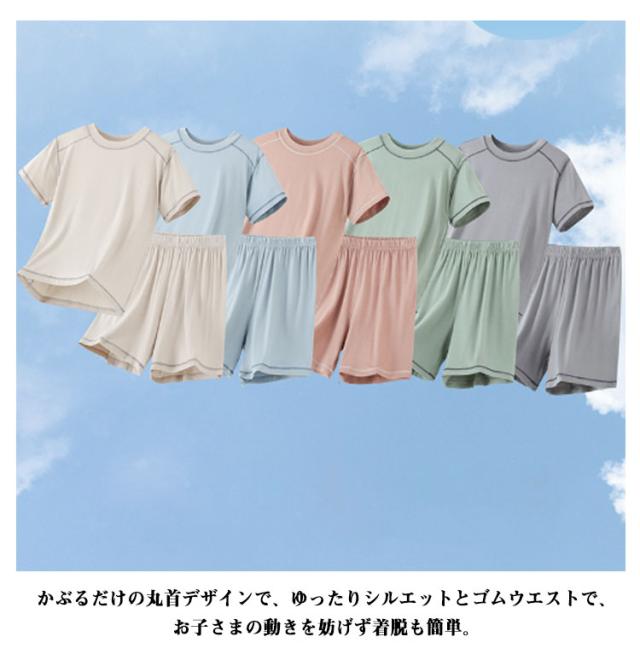 部屋着 男の子 キッズ 女の子 涼しい 夏 柔らかい モダール生地 薄手 半袖tシャツ 半袖パジャマ 上下セット 通気 短パン ルームウェア お出かけ 子供服 シンプル カジュアル セットアップ トップス 半袖パジャマ 夏用
