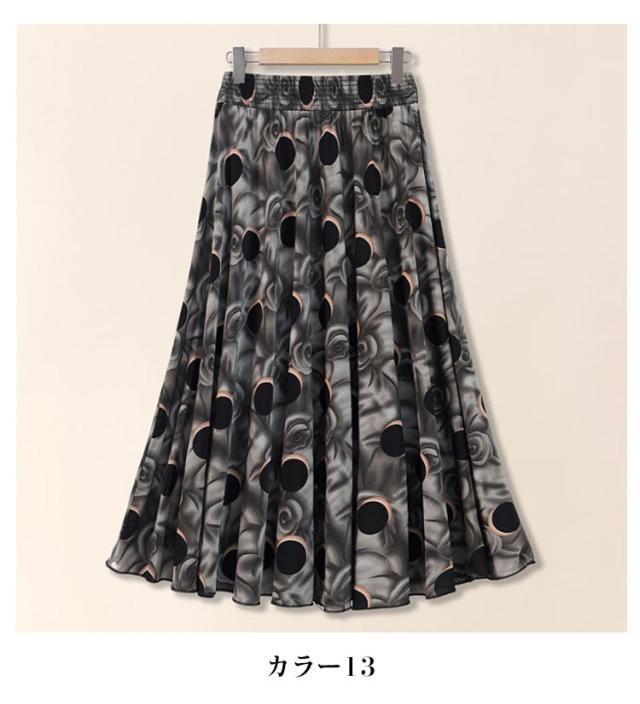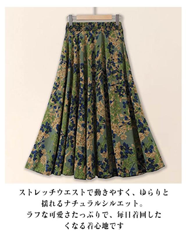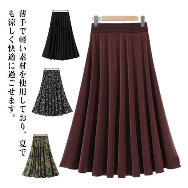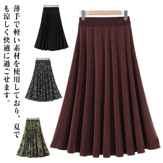 レディース ロング 春 ウエストゴム 夏 ふんわり マキシスカート ロンスカ 涼し気 上品 スカート 薄手 通勤 涼感 冷感 サラサラ ビジネス トレンド 総柄 Aライン ハイウエスト 着?せ オフィス きれいめ ママ スカート 通学