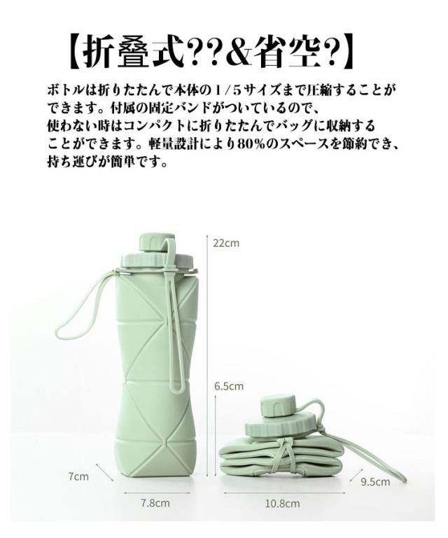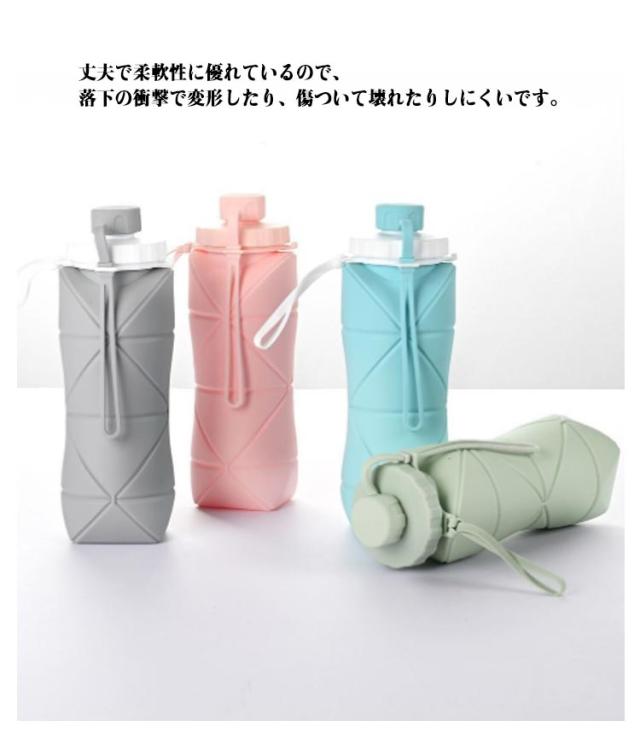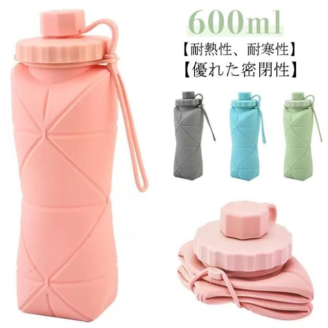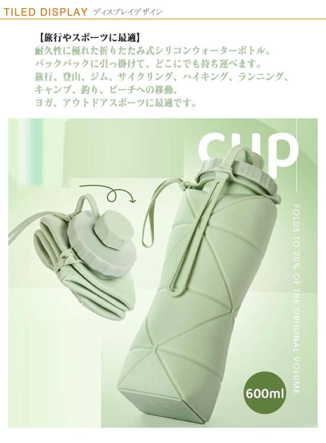 水筒 大人 携帯用スポーツ水筒 シリコン折りたたみ式ウォーターボトル 洗いやすい 大容量 登山大容量防水/耐熱屋外環境保護ウォーターボトル 自転車登山用漏れ防止 BPAフリー FDA認証食品級シリコン製 折り紙 子供 折りたたみ 600ml 超軽量 水筒 軽量 無毒無臭