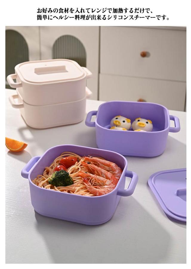 シリコンスチーマー 鍋 角型 深型 シリコン 2段 蓋付き 蒸篭 シリコンスチーマー 蒸し器 食洗機対応 蒸し鍋 電子レンジ対応 オーブン対応 しっとり 多機能スチーマー 簡単
