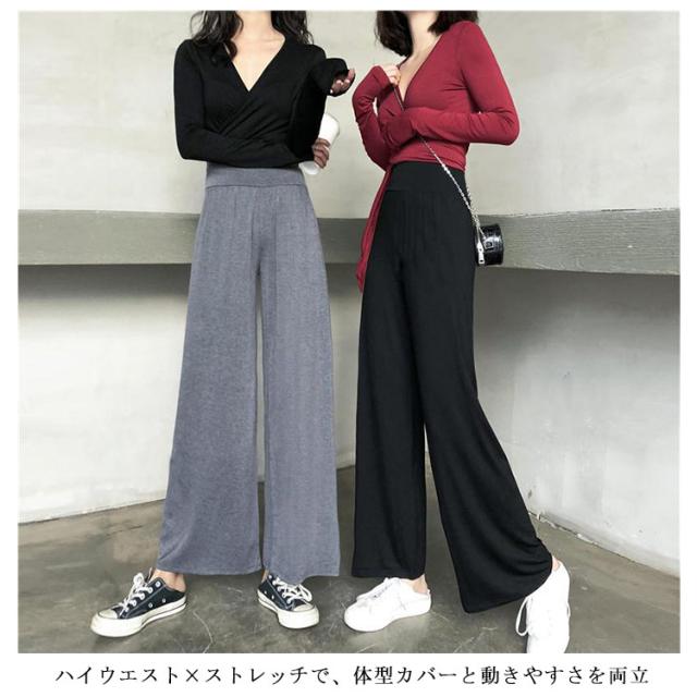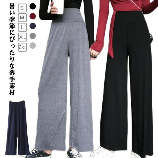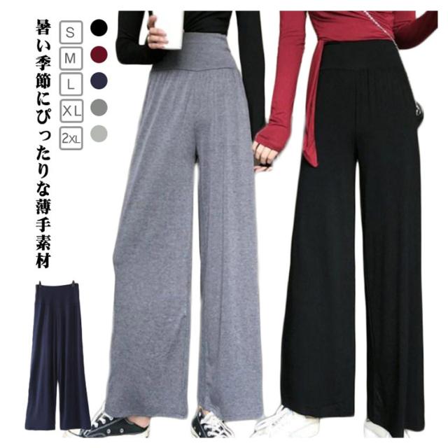 レディース ストレートパンツ 夏用 薄手 ロングパンツ 楽ちん 大きいサイズ ワイドパンツ 脚長効果 無地 体型カバー ワイドパンツ リラックス ウエストゴム 通勤 旅行 部屋着 30代 40代 50代 カジュアルパンツ 韓国風