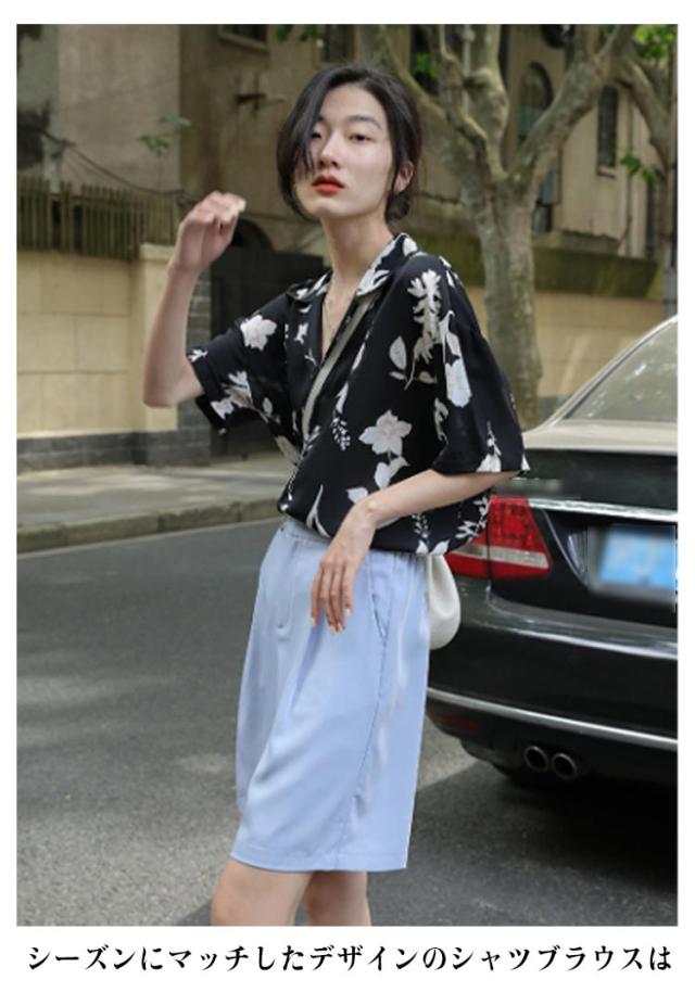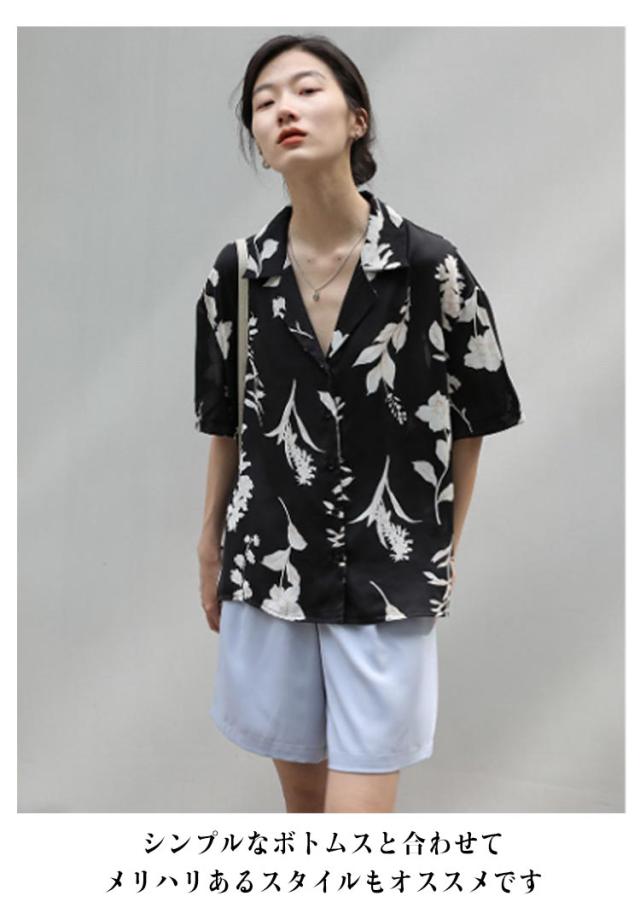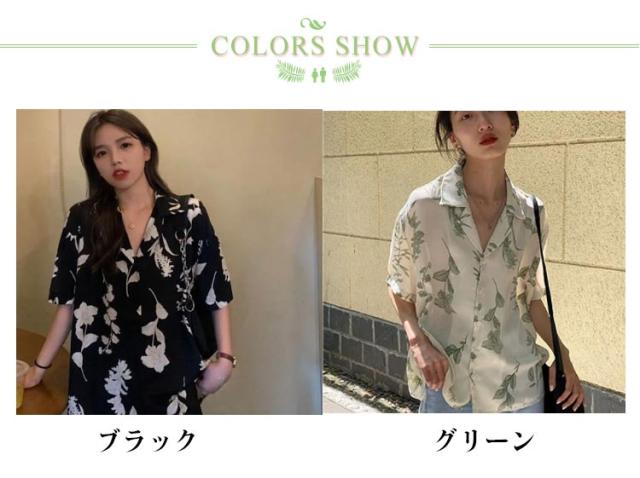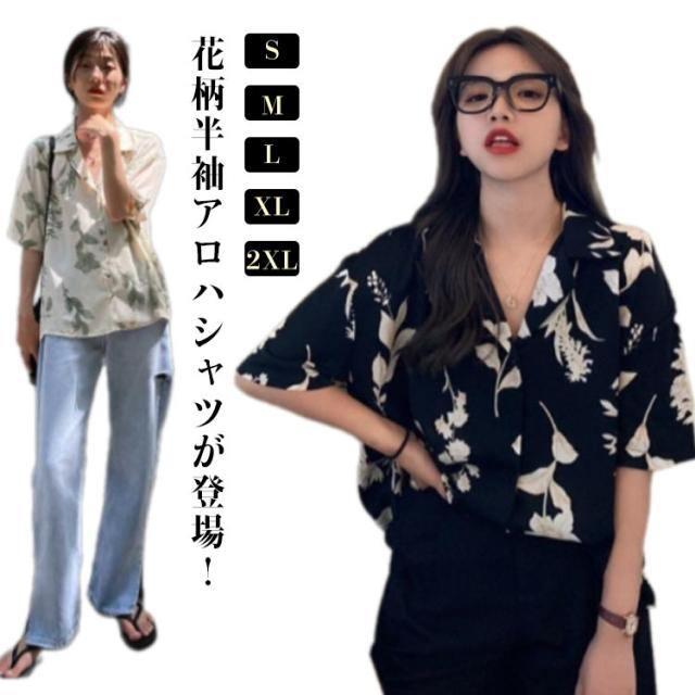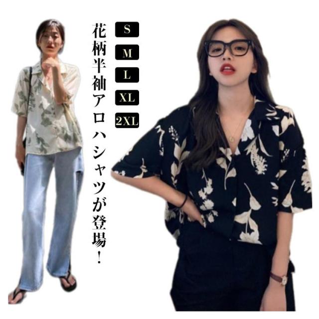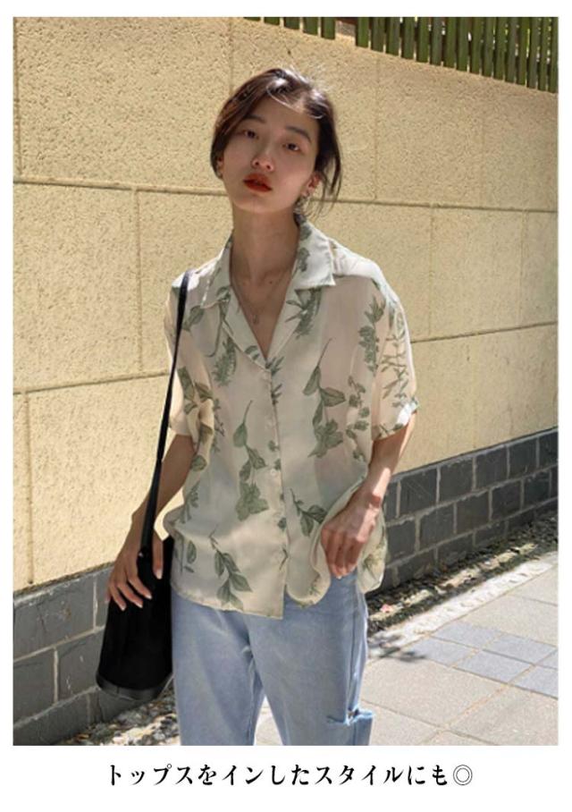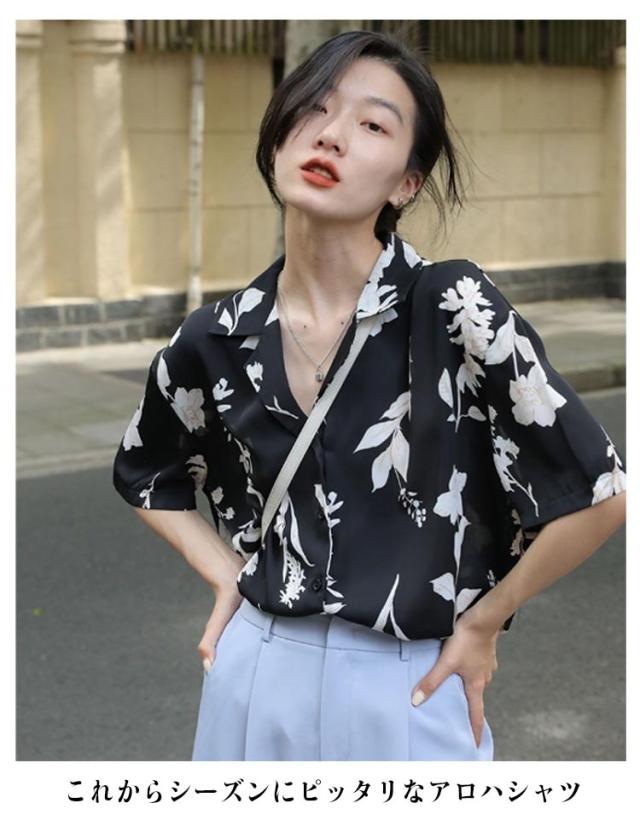 半袖 開襟 シンプル レディース レディース アロハ ブラウス 半袖シャツ シャツ トップス アロハシャツ ヴィンテージ風 葉 ボタニカル 総柄 人気 送料無料 ハワイシャツ カワイイ トレンド 花柄 デザイン 春夏 送料無料 薄手