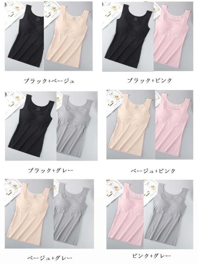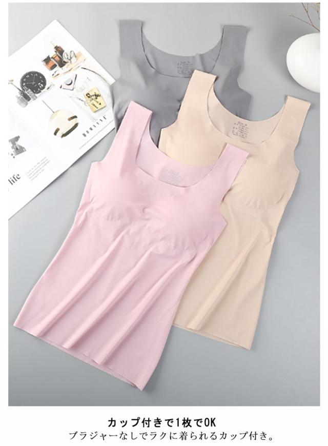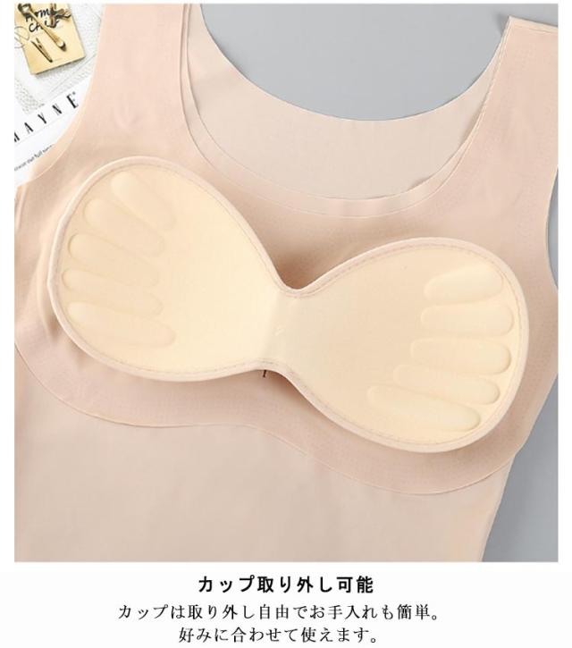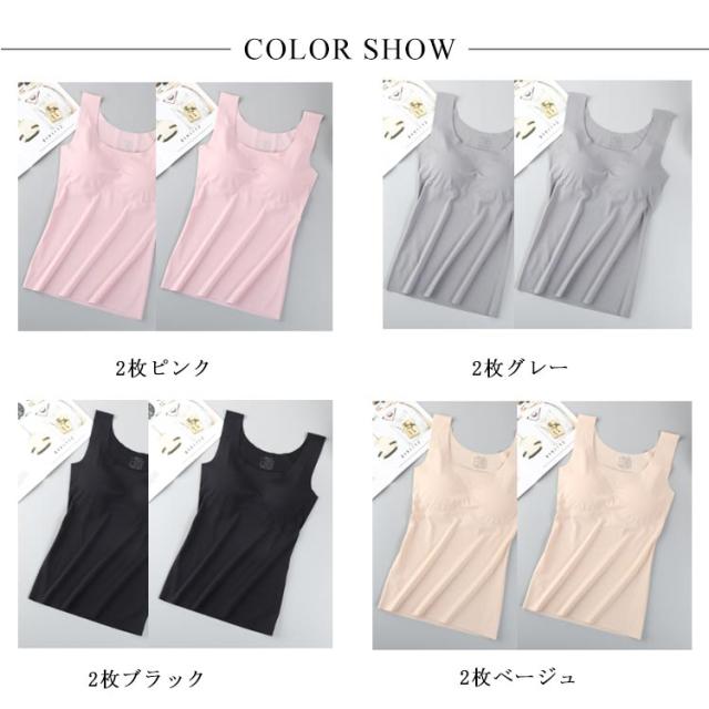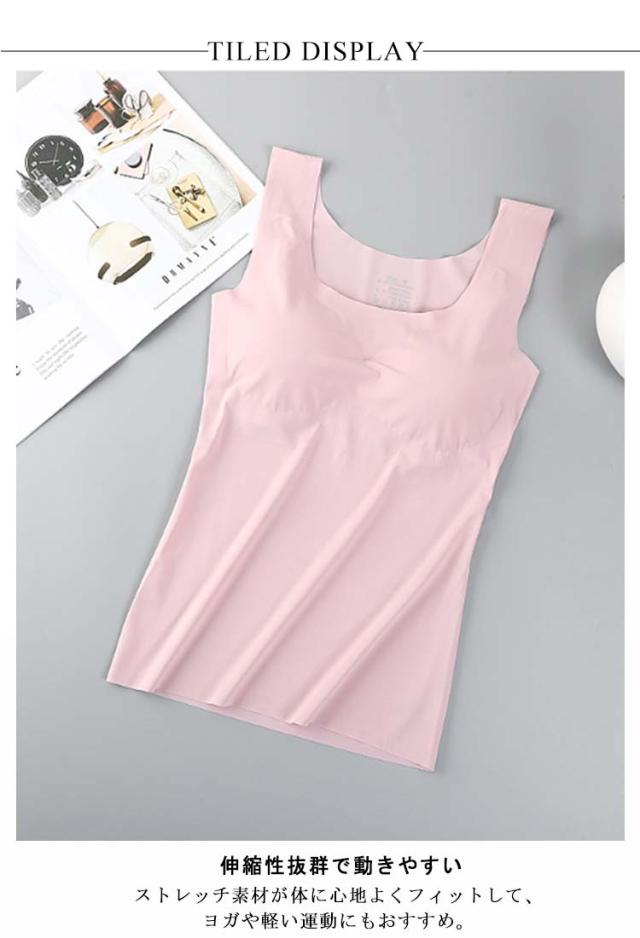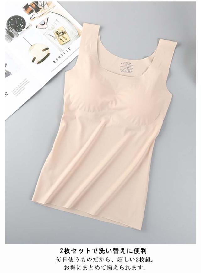 レディース 2枚セット ブラトップ インナー シームレス カップ付き タンクトップ 肌着 2枚セット アイスシルク シンプル ブラジャー ノンワイヤー 下着 カップ取り外し可能 胸パッド付 無地 響きにくい