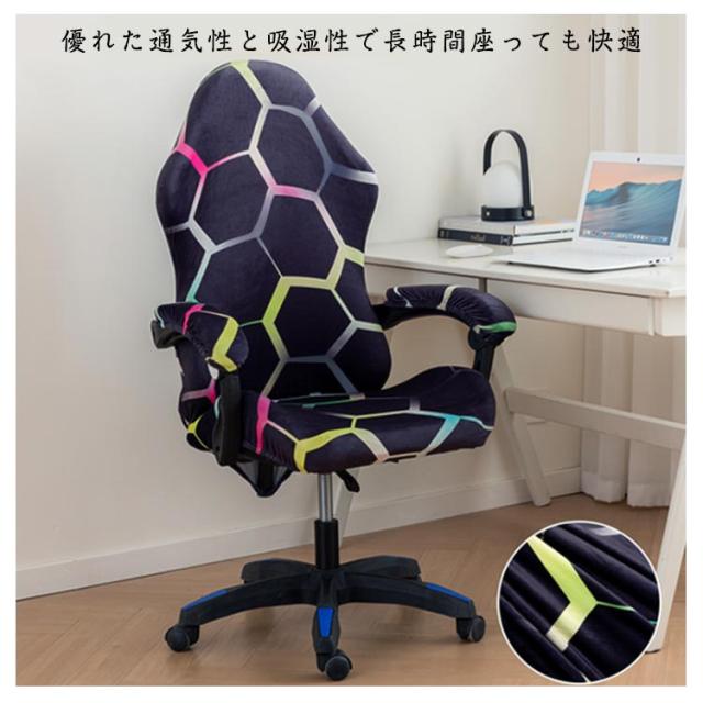カバー 分体式 アームレスト付き ゲーミングチェア ファスナー付き イスカバー オフィスチェアカバー 肘置き 回転式椅子カバー ゲーミングチェア 伸縮素材 ストレッチ 汚れ防止 洗える オフィス用