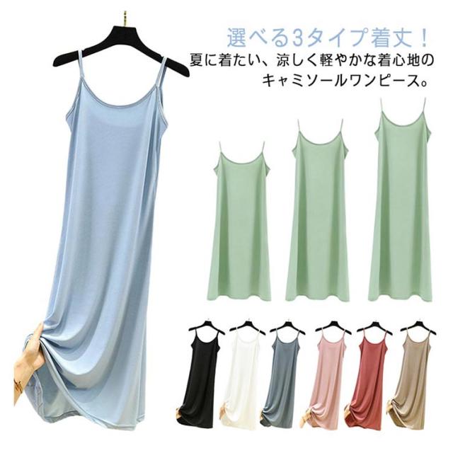 キャミソールワンピース レディース ペチコート ショートワンピース キャミソール 選べる着丈 インナーワンピース ロング丈 シンプル 選べる着丈 ワンピース 大人 ノースリーブ 夏 無地 カジュアル ルームウェア 3タイプ 全8色