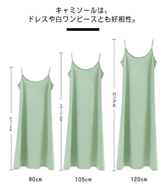 | 選べる3タイプ着丈!夏に着たい、涼しく軽やかな着心地のキャミソールワンピース。 これからのシーズン大活躍の、インナーワンピースです!女性らしさ溢れるシンプルなワンピース。 リラックスタイムにオススメ!伸縮性が抜群、柔らかな肌ざわりが心地よい! キャミソールは、ドレスや白ワンピースとも好相性。 | |