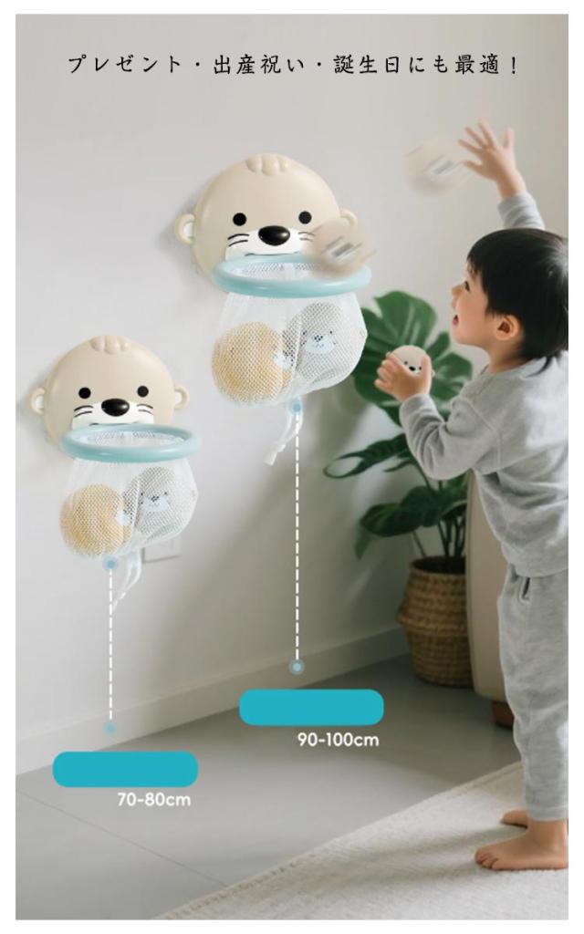 | お風呂おもちゃセット 吸盤付きゴール 浮かぶボール 知育投げ遊び 【水?×ボール投げ×魚すくい】1セットで3通りの遊びが楽しめる! 【柔らか素材で安全】PVC製で小さなお子様でも安心して握れる。 【知育×運動】握る・すくう・投げるで手先の器用さや集中力を自然に育む。 【吸盤付きゴール】強力吸盤で浴槽やタイル、ガラス面にしっかり固定。 【簡単収納】ネットバスケットは調節可能なゴム紐付きで片付けも楽々。 プレゼント・出産祝い・誕生日にも最適! | |