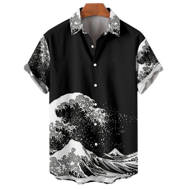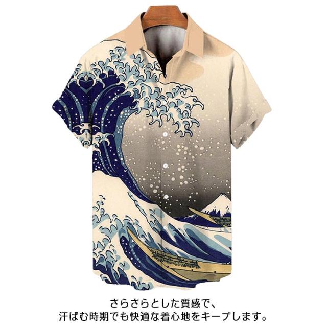 鯉柄 和柄 柄シャツ 大人 カジュアルシャツ アロハシャツ 半袖シャツ 波柄 和風 海波柄 海柄 薄手 総柄 総柄シャツ アロハシャツ 男性 ストリート 半袖 夏 夏服 シャツ レトロ カジュアル メンズ ビーチ 海辺 川 リゾート 旅行 お祭り 花火大会 30代 40代 50代
