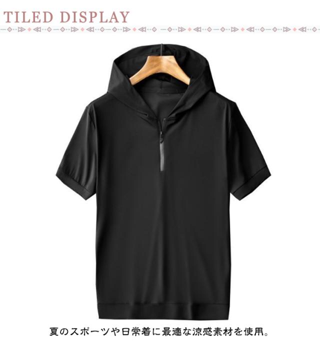 tシャツ 吸汗速乾 夏服 接触冷感 半袖パーカー パーカー メンズ 半袖パーカー シンプル 半袖パーカー 薄手 半袖Tシャツ 夏 通気性 ハーフジップ トップス スポーツウエア プルオーバー アウトドア 半袖 おしゃれ スポーツ ジップパーカー 大きいサイズ
