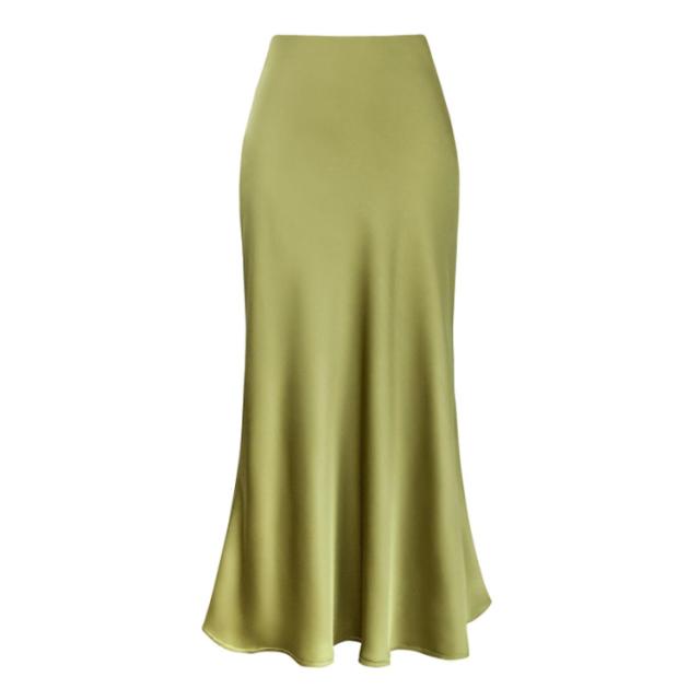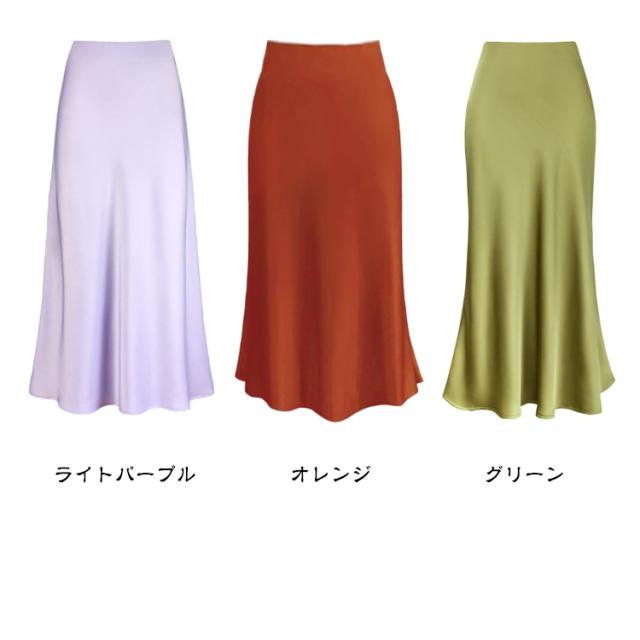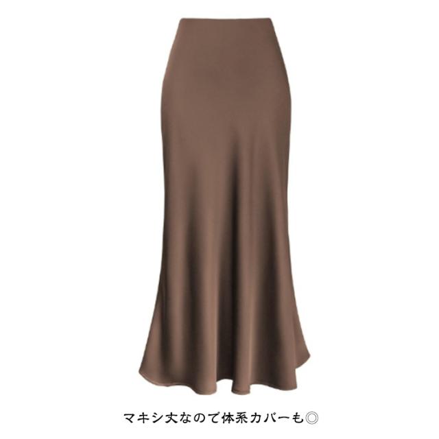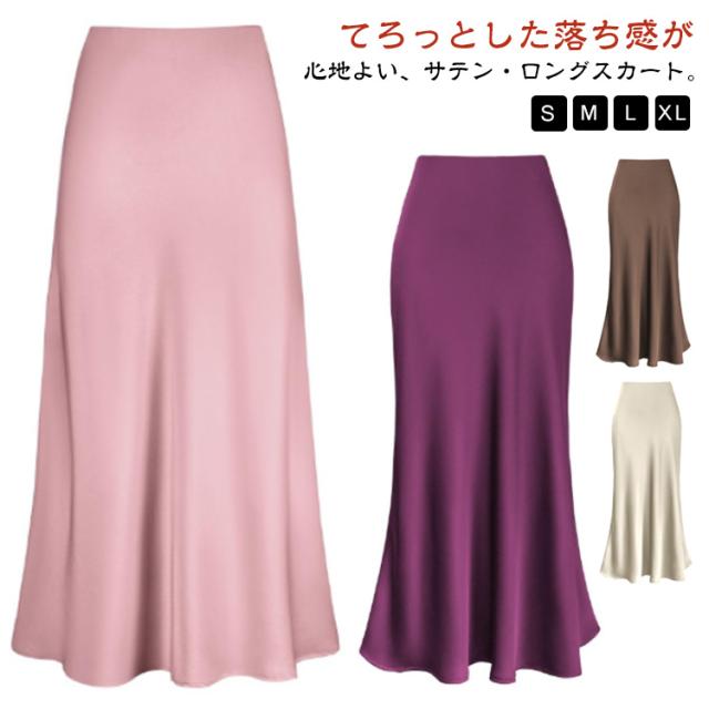 スカート サテン ハイウエスト ロングスカート 上品 タイトスカート マーメイド 大人 フレア 光沢感 落ち感 夏 とろみ 春 レディース フェミニン エレガント 通勤 秋 涼感 サテン 体型カバー マキシ丈 楽ちん 韓国風 きれいめ 20代 30代 40代 50代 無地