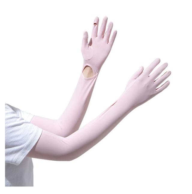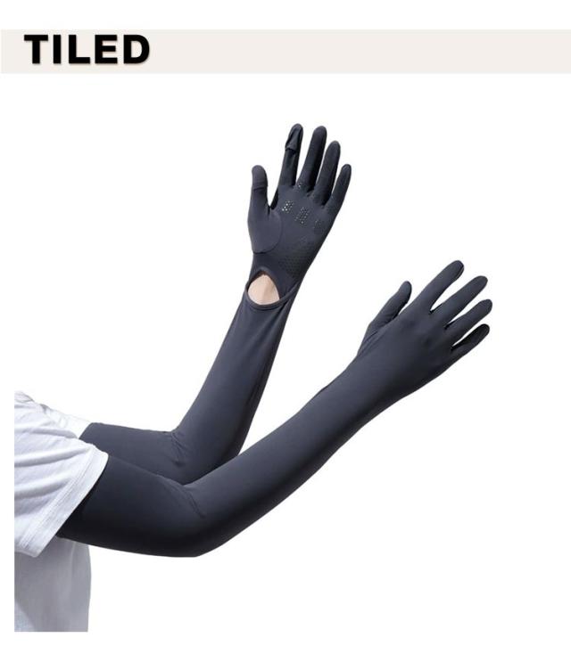 | 『指先までしっかりガード!冷感アームカバー』 冷感接触素材が使用された夏にぴったりの冷感アームカバー。ひんやりお洒落に日焼け対策♪ 指先〜手のひら〜肩下までしっかり覆えるロング丈なので、Tシャツと合わせて腕全体の日焼け対策が簡単にできます。 紫外線カット率最大98%、UPF50+を実現。 手首・親指・人差し指部分は穴空きになっているため、すぐに外してスマホなどちょっとした作業や操作をすることができます。 | |