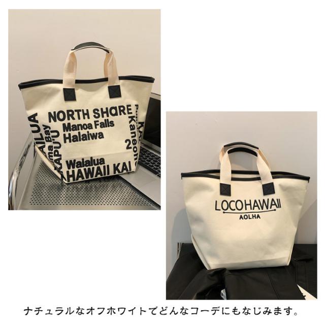 | どんなシーンでも使いやすいシンプルなトートバッグ。裏面のハワイロゴがかわいいポイント。 ナチュラルなオフホワイトでどんなコーデにもなじみます。 しっかりキャンバス生地!荷物が多い日でも安心のしっかり感。たっぷり入る大容量サイズ! 内ポケット付きで小物の整理も◎ 通学・お出かけ・旅行にもぴったり!サブバッグとしても使いやすく、長く愛用できるアイテムです。 気軽に持てるキャンパス素材、ナチュラル感のある、風合いは気取らず、普段使いにぴったり。 | |