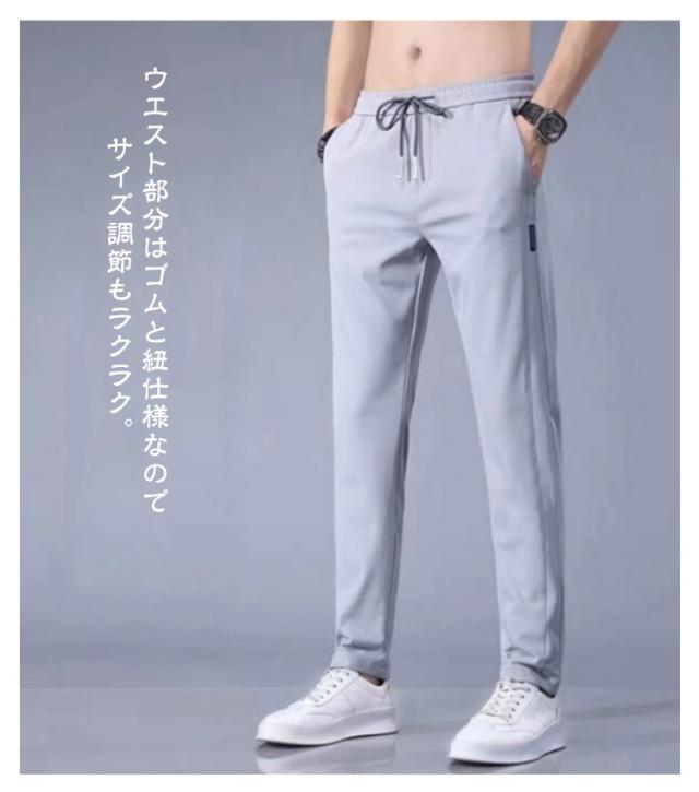 ストレッチ ひんやり 接触冷感 速乾 冷感パンツ カジュアル 伸縮 ロングパンツ アイスシルク 夏 薄手 ゴルフパンツ パンツ 大きいサイズ 美脚 長ズボン 通気 涼しい スポーツ イージーパンツ アイスシルク おしゃれ 無地 ストレート 夏 春 秋 クール感