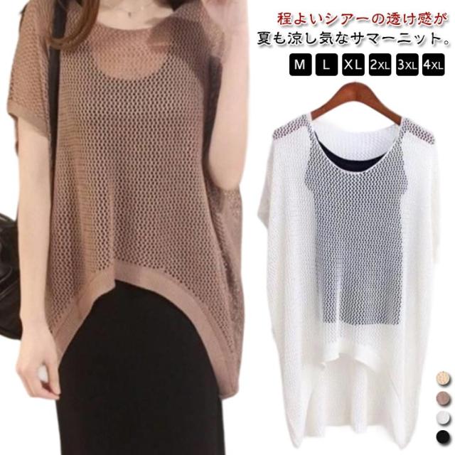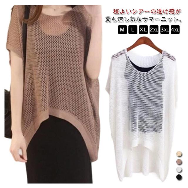 メッシュ編み 肌見せ サマーニット 透かし編み 可愛い メッシュ ニット ニット 透け感 オーバーサイズ プルオーバー 大きいサイズ 2XL 春 夏 レディース トップス セーター 体型カバー ニットソー 透け 送料無料 M L XL メッシュ編み 3XL