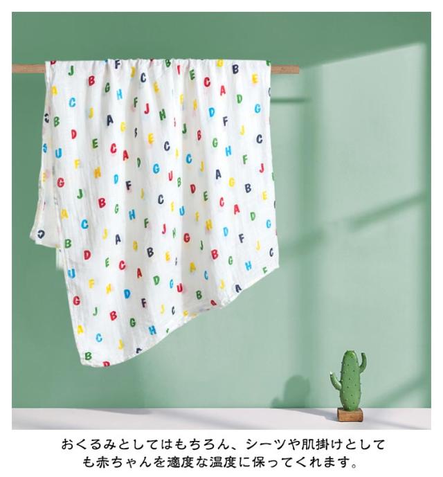 | 赤ちゃんをやさしく包み込むベビーブランケット。赤ちゃんのお肌にやさしいガーゼ素材のおくるみです。 ふんわり軽くて柔らかい、綿素材は、通気性・吸湿性に優れており、デリケートな赤ちゃんのお肌を優しく包んでくれます。吸水&速乾仕様!柔らかなガーゼ素材は優れた吸水性を備えています。通気性にも優れ、一年を通して使用できます。寒い季節でも保温性があり、汗をかいてもすばやく吸収して、清涼感を保ち、快適な着心地を提供します。 おくるみとしてはもちろん、シーツや肌掛けとしても赤ちゃんを適度な温度に保ってくれます。 コンパクトにたためるので、お出かけ時にもかさばらず、おむつ替えのマットや、ベビーカーの日よけ・虫よけにも、多用途でお使いいただけます。 洗濯機で洗えるので、お手入れも楽々。軽くてかさばらず、洗濯後の乾きも早いので、いつも清潔にお使いいただけます。 おしゃれな出産祝いなどのプレゼントにもおすすめです。 | |