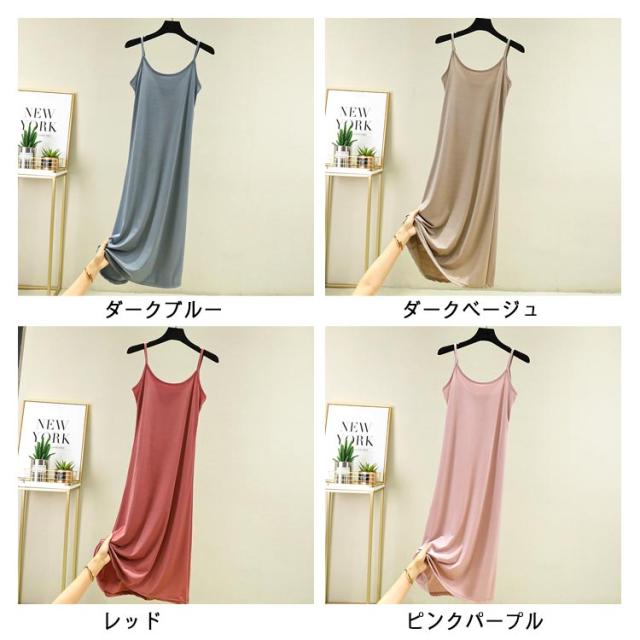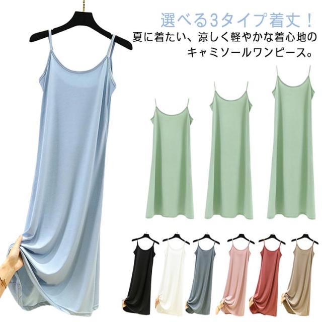 シンプル キャミソール キャミソールワンピース ノースリーブ 選べる着丈 ワンピース ロング丈 レディース ペチコート インナーワンピース ショートワンピース 大人 夏 ワンピース 無地 カジュアル ルームウェア 3タイプ 全8色