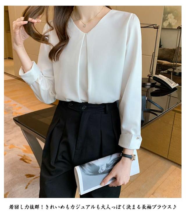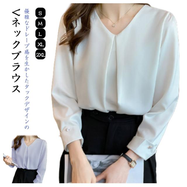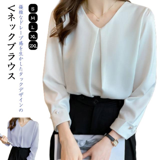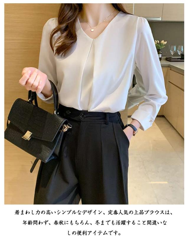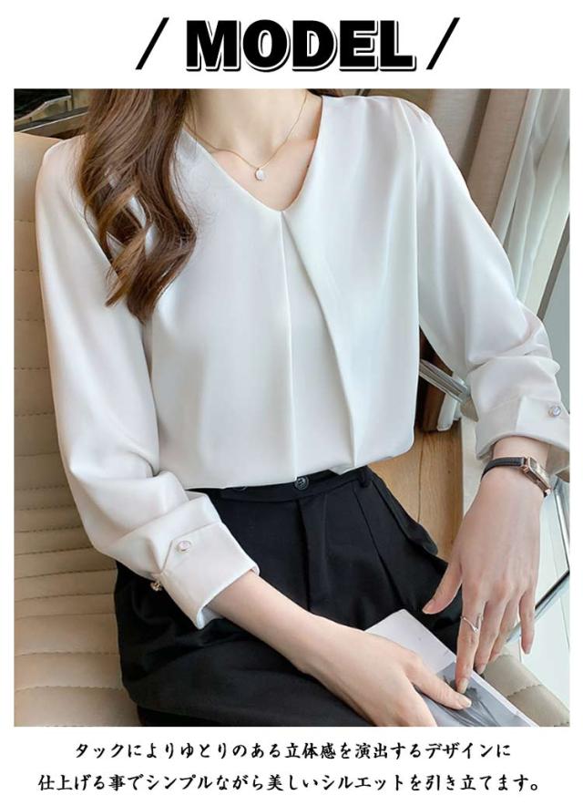 シャツブラウス ブラウス スーツ 事務服 Vネック フロントタック フォーマル トップス インナー シフォン カジュアル OL ブラウス 通勤 女性 ビジネス オフィス 大人 レディース 卒園式 トップス 入学式 七五三 入園 卒業式 長袖 結婚式 母 ママ