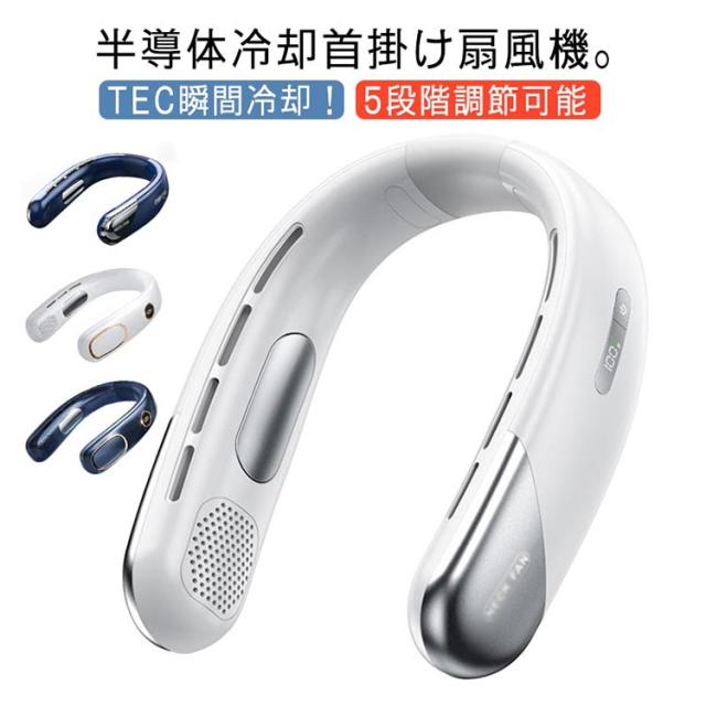 扇風機 瞬間冷却 首かけ 首掛け扇風機 ネッククーラー 軽量 羽なし 冷却ファン ネックファン 首掛けクーラー 冷感 首掛けファン 半導体冷却 冷却プレート 静音 小型 風量5段調節 おしゃれ 携帯便利 熱中症対策/花見/花火大会/通勤/通学