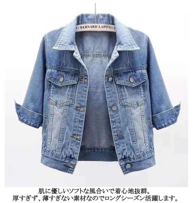 デニムジャケット Gジャン レディース ジージャン 半袖 デニム 半袖デニムジャケット ショート丈 羽織り 五分袖 おしゃれ デニムポレロ 春 夏 秋 シンプル デニムジャケット カジュアル 通学 普段着 お出かけ ライトアウター 20代 30代 40代
