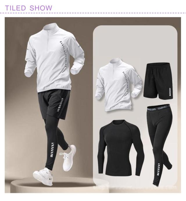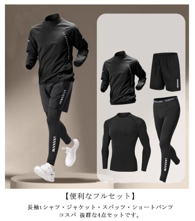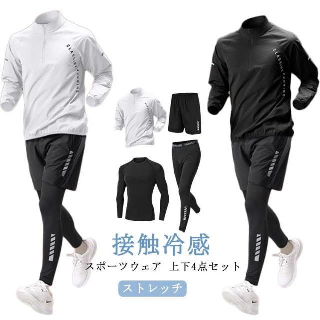 メンズ 上下セット ジャージ セット ウェア ランニングウェア 接触冷感 ジムウェア 吸水速乾 春 ウォーキング 運動着 コンプレッションウェア 4点セット 長袖 トレーニングウェア セットアップ ストレッチ おしゃれ トレーニングウェア 夏 秋 冬