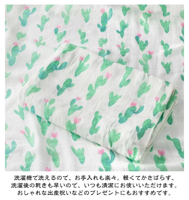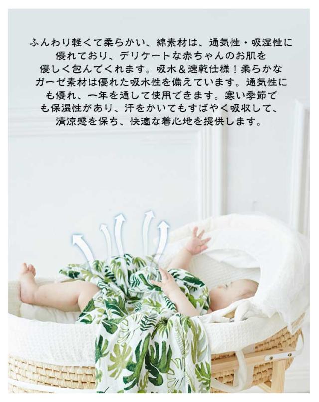 | 赤ちゃんをやさしく包み込むベビーブランケット。赤ちゃんのお肌にやさしいガーゼ素材のおくるみです。 ふんわり軽くて柔らかい、綿素材は、通気性・吸湿性に優れており、デリケートな赤ちゃんのお肌を優しく包んでくれます。吸水&速乾仕様!柔らかなガーゼ素材は優れた吸水性を備えています。通気性にも優れ、一年を通して使用できます。寒い季節でも保温性があり、汗をかいてもすばやく吸収して、清涼感を保ち、快適な着心地を提供します。 おくるみとしてはもちろん、シーツや肌掛けとしても赤ちゃんを適度な温度に保ってくれます。 コンパクトにたためるので、お出かけ時にもかさばらず、おむつ替えのマットや、ベビーカーの日よけ・虫よけにも、多用途でお使いいただけます。 洗濯機で洗えるので、お手入れも楽々。軽くてかさばらず、洗濯後の乾きも早いので、いつも清潔にお使いいただけます。 おしゃれな出産祝いなどのプレゼントにもおすすめです。 | |