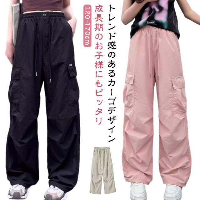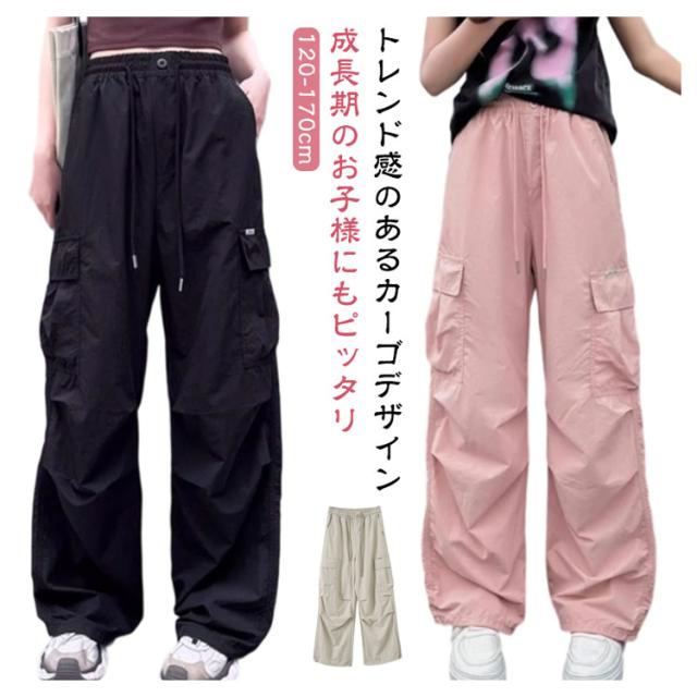 シャカシャカ素材 カーゴパンツ サイドポケット付き ワイドパンツ ガールズ キッズ 子供服 薄手 ジュニア ロングパンツ 夏 ファッション ダンス衣装 夏 ゆったり カジュアル ストリート 韓国子供服 春 長ズボン ガールズ 120cm 130cm 140cm 150cm 160cm