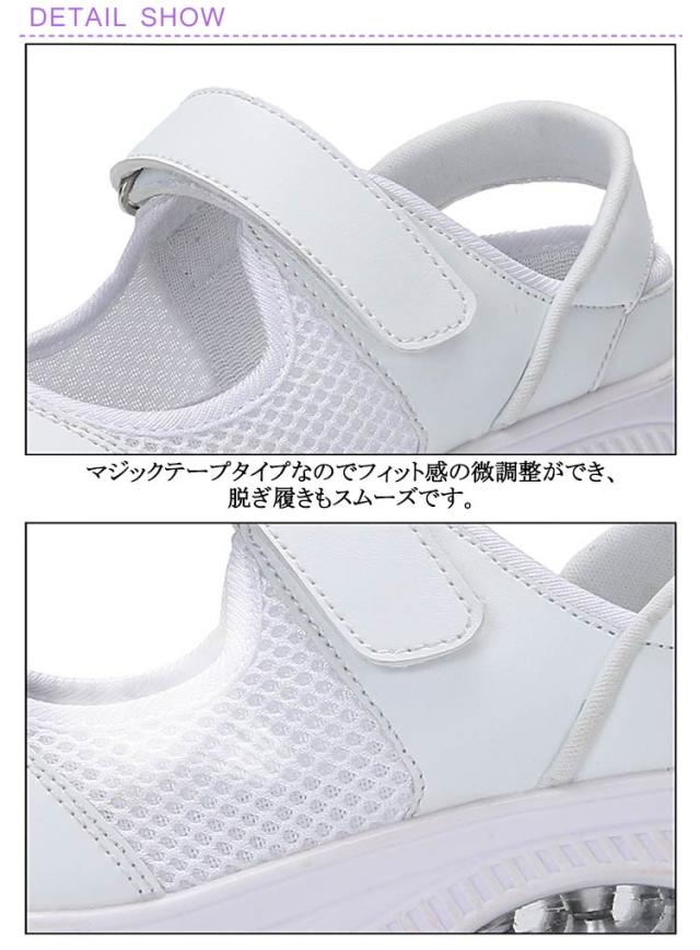 | 22.5cm〜26.0cm ウォーキングはもちろん、普段使いにもバッチリなウオーキングシューズ 柔軟で軽便な靴底、 アッパーは一体織りメッシュを採用し、通気性に優れた。 蒸し暑さを削減できて爽やか感じを。 インソールも抗菌防臭加工を施して、軟らかくて、履いたその日から足になじみやすくなっています。 アウトソールは耐摩耗性に優れたMDゴムを採用して、付着力が強くて滑りにくく、 クッション性も強化し、地面との反発力を高め、グリップ性が向上し、お年寄りは安心して履きやすいです。 看護師さんはもちろん、介護士、清掃、事務など室内でのお仕事におすすめです。 マジックテープタイプなのでフィット感の微調整ができ、脱ぎ履きもスムーズです。 シンプルかつカジュアルなデザインで、コーデしやすいため、普段使いはもちろん、 トライブ、通勤、通学、ショッピングなど幅広くご利用いただけます。 | |